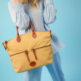 Dooney & Bourke bags are crafted from the best materials around, with craftsmanship that can’t be beat. We stand by the quality and durability of all of our leather goods, guaranteeing against any defects in craftsmanship for a full year of normal use. Register your goods upon purchase and your new look will be covered by the Dooney Guarantee. We also offer repairs and replacements from our professional leather goods repair team.