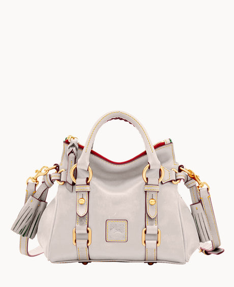 Now, if you’re looking to turn heads and catch eyes, our luxurious Florentine Nano Satchel in pale blue can’t be beat. Its light-as-air blue coloring screams springtime, while its gold accents and rich Italian leather body project unparalleled decadence.